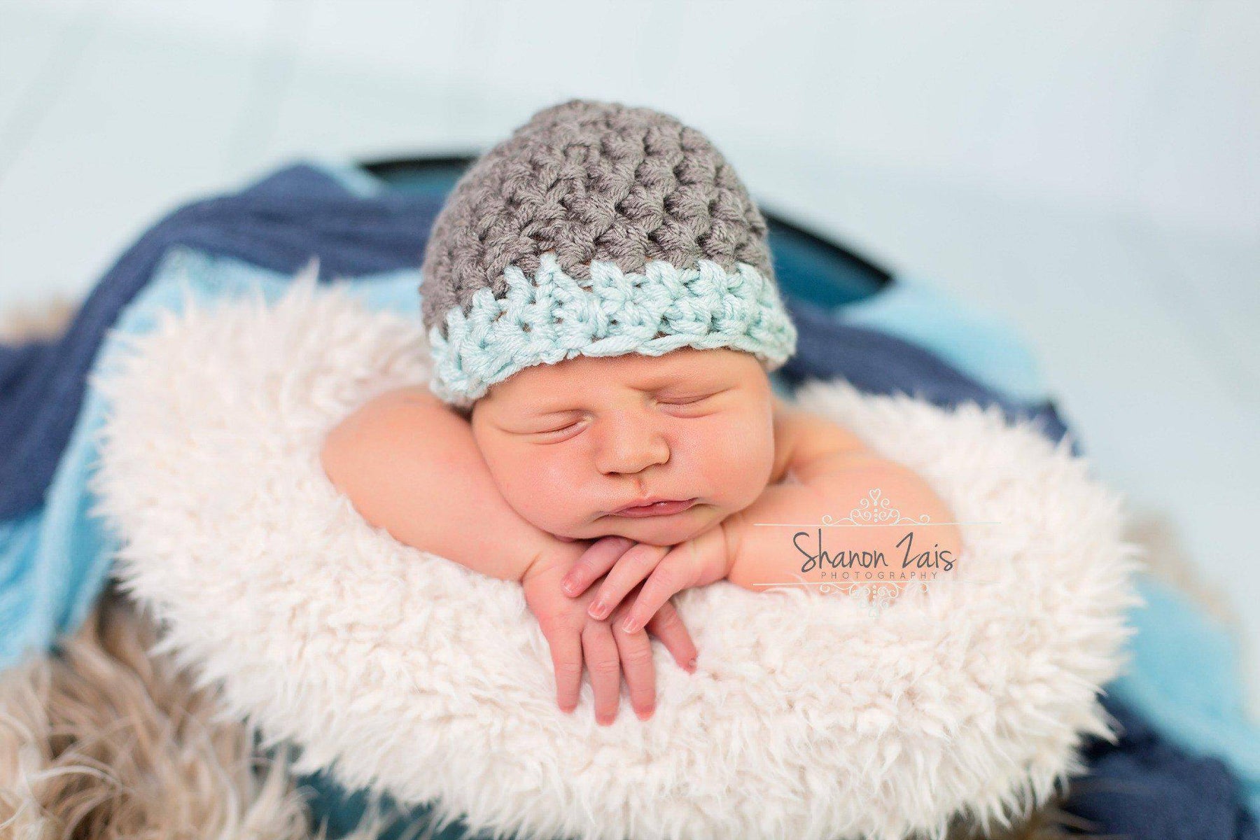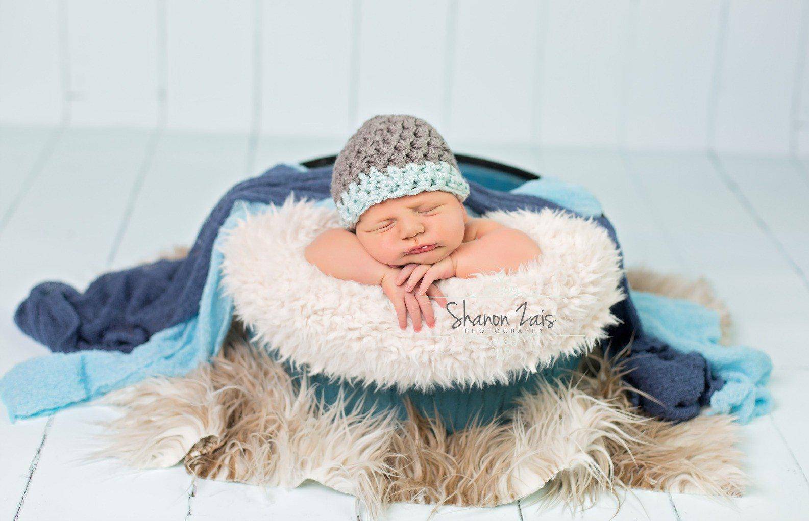 SET Gray Newborn Baby Hat Glacier Blue Edge and Stretch Knit Wraps