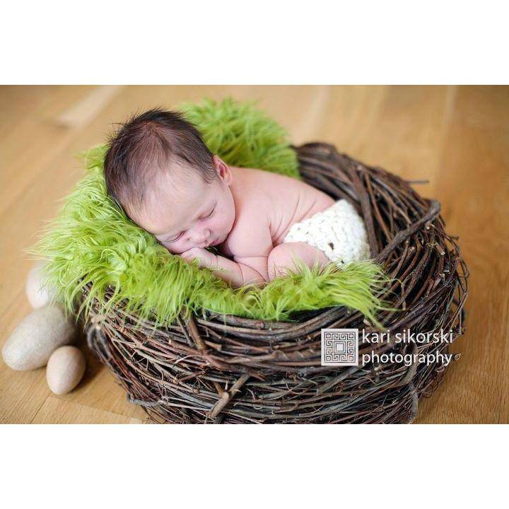 This is THE perfect prop set for your newborn photos! Imagine your sweet little one all curled up like a little bird or owl on a soft fur inside this nest! This sweet nest measures approximately 20 inches around and 8 inches tall (size varies slightly from nest to nest). And to make it even better it's paired with one of my 27x20 lime green mongolian furs (or you can choose a different color and include it in the Note to Seller section during checkout).