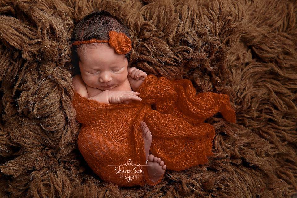 SET Pumpkin Orange Mohair Knit Baby Wrap and Headband