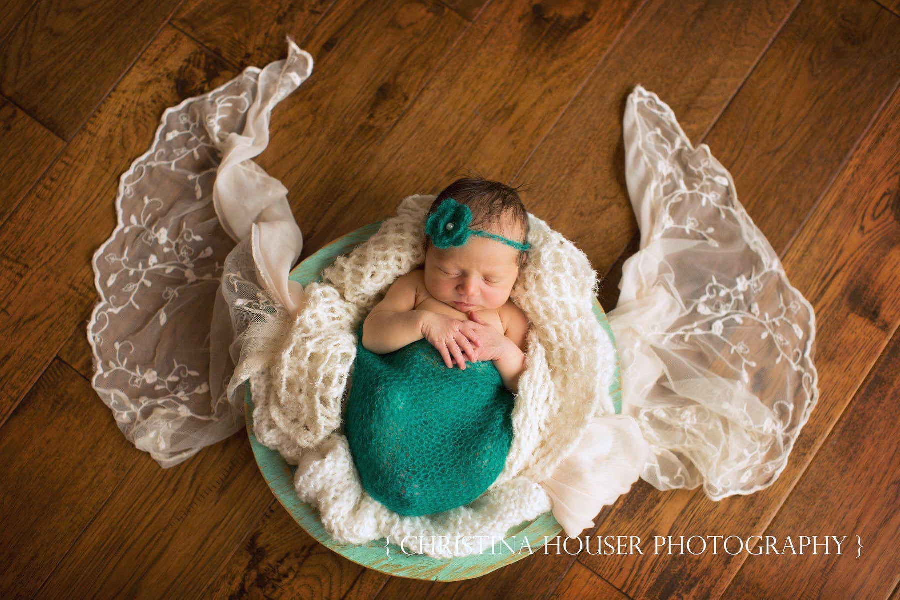 SET Teal Mohair Knit Baby Wrap and Headband - Beautiful Photo Props