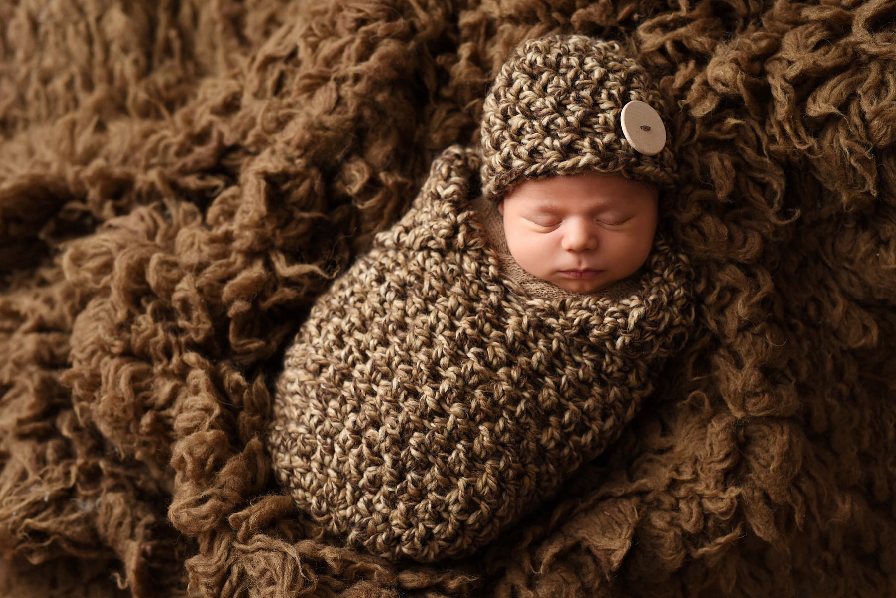 SET Toffee Newborn Baby Collared Cocoon and Button Hat