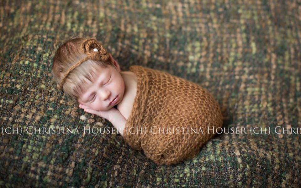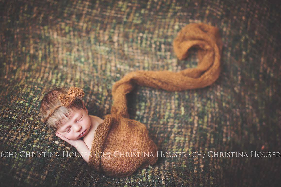 These loosely knit, extremely stretchy and versatile mohair wraps are easy to use and can be completely swaddled around newborn babies for the perfect first photo! They measure approximately 16" x 31" unstretched. Comes with matching mohair flower headband.