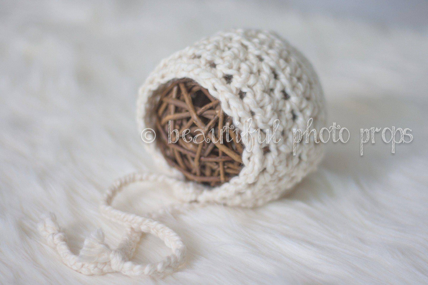 Part of our Natural Newborns organic line! Introducing our Simply Cotton Newborn baby bonnet in cream...these adorable cotton bonnet hats are the perfect hat for your newborn photos! Made from soft organic cotton yarn, this is the best you can get for your little one! Fits newborn but larger sizes can be requested. This is for the cream hat only.