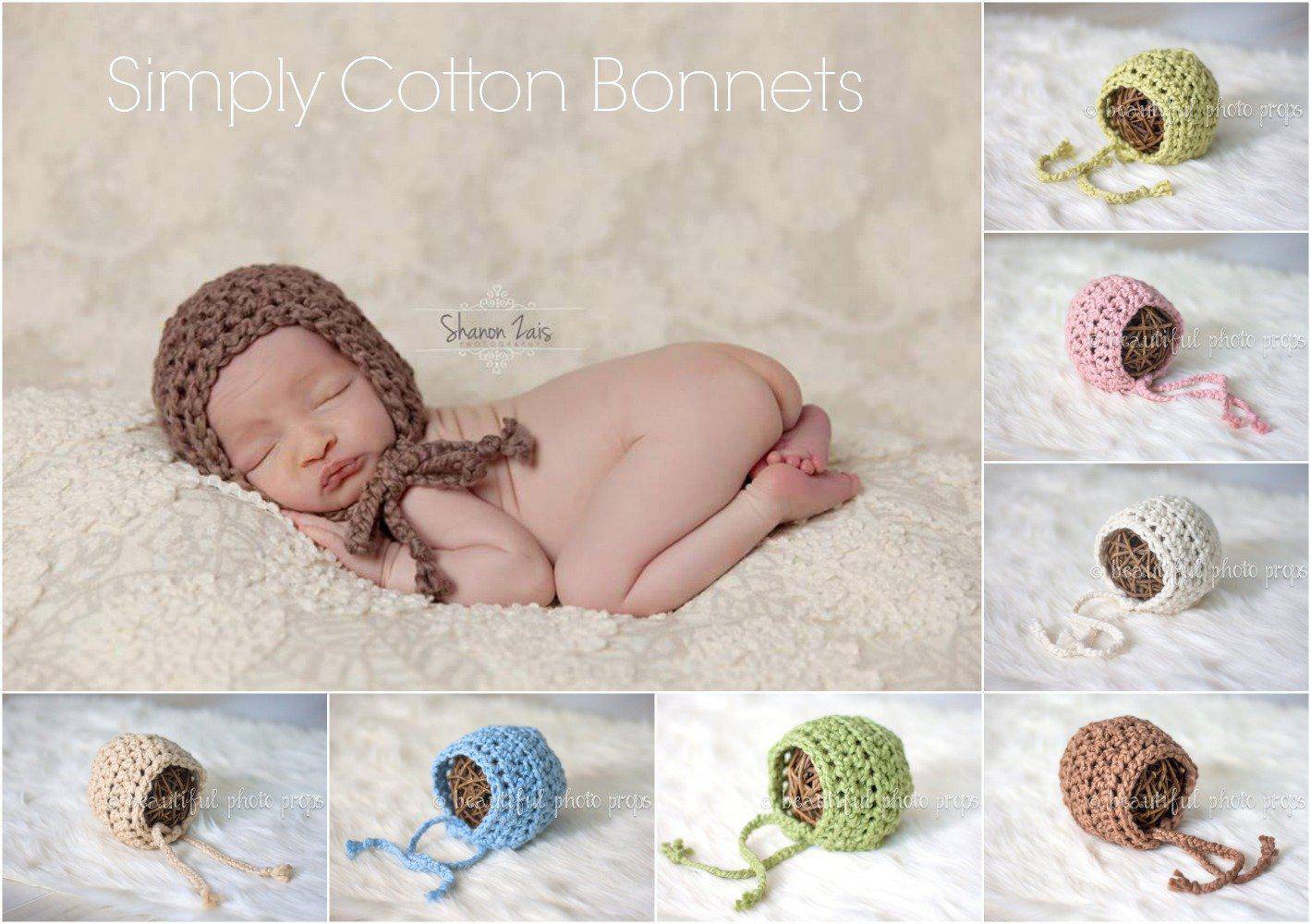 Part of our Natural Newborns organic line! Introducing our Simply Cotton Newborn baby bonnets...these adorable cotton bonnet hats come in a wide array of colors and are the perfect hat for your newborn photos! Made from soft organic cotton yarn, this is the best you can get for your little one!