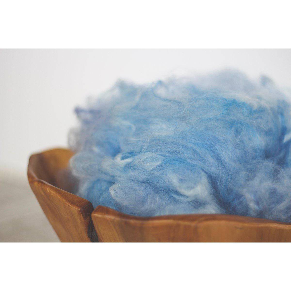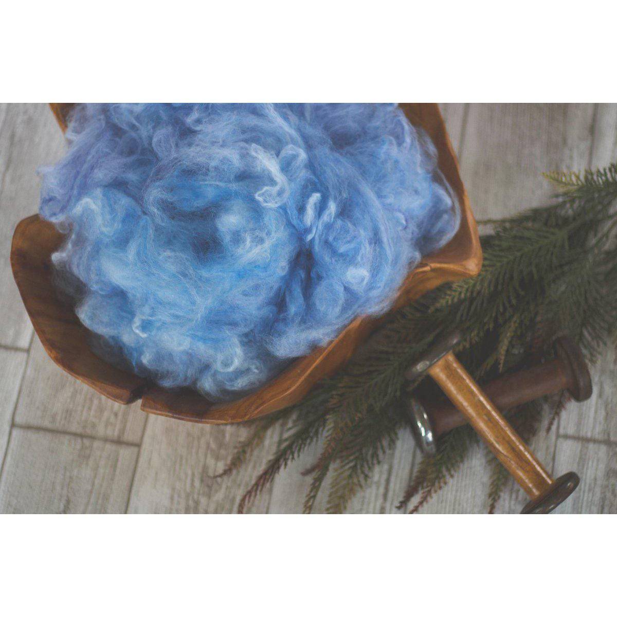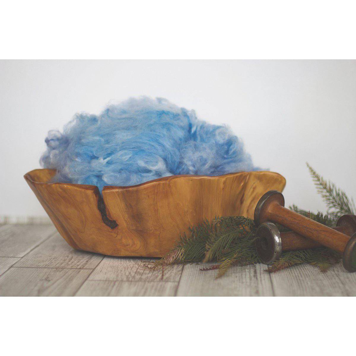 Our newborn photography fluff is carefully crafted by hand and perfect for using as basket stuffing or nest filler for newborn photography. This super soft loose wool blend can be pulled apart, fluffed and spread out to be arranged as you need it to get that perfect shot.