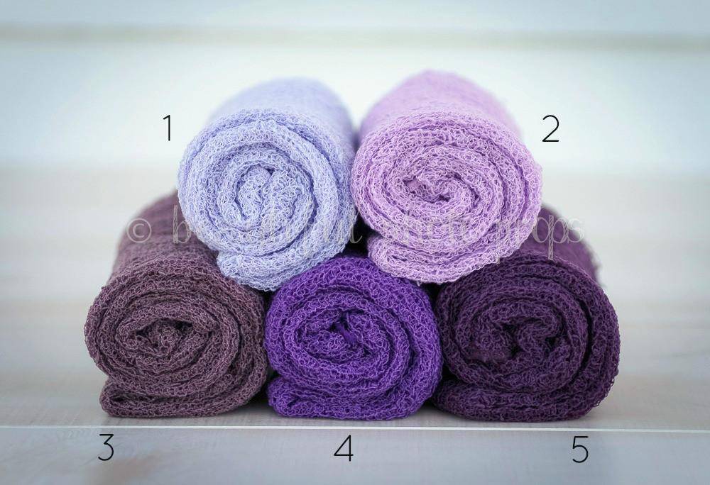 Introducing our luxurious and versatile stretch knit wraps in stunning purple tones, perfect for newborn photography. These props are a must-have for any photographer looking to capture beautiful, timeless images of newborns in a safe and comfortable manner. Made from premium quality materials, our wraps are stretchy, soft, and durable, making them ideal for swaddling and posing newborns.