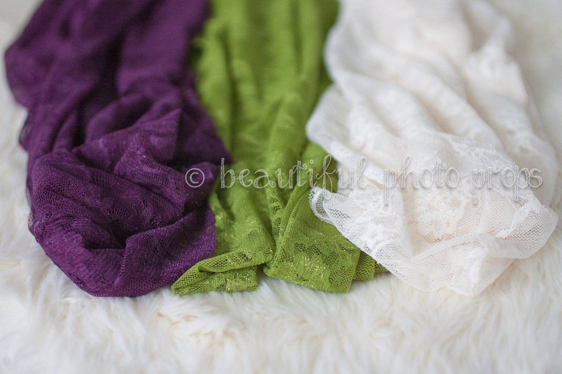 These gorgeous super stretchy lace wraps are easy to use and can be completely swaddled around newborn babies for the perfect first photo! Their generous length and width measures approximately 60" x 12" unstretched or you can use the drop down menu to choose a smaller size. This is for the olive green wrap only.