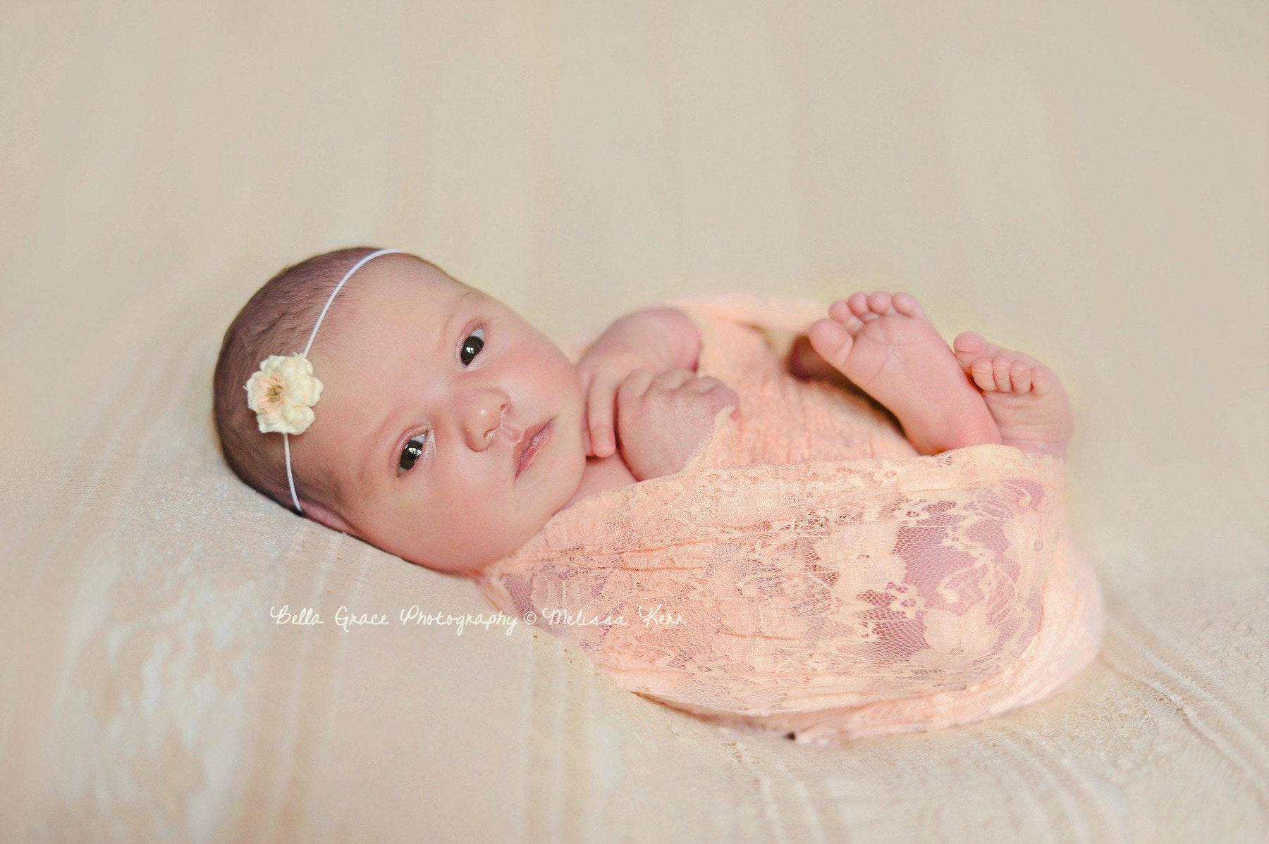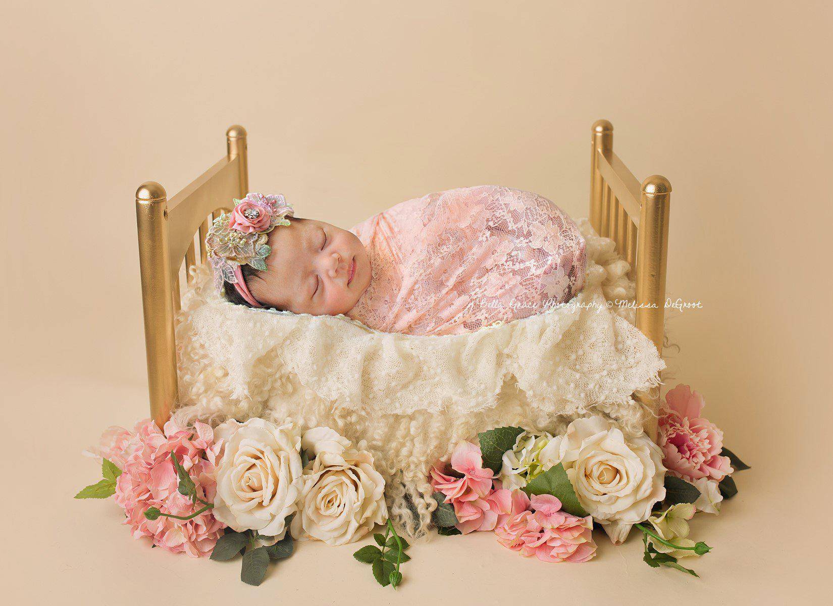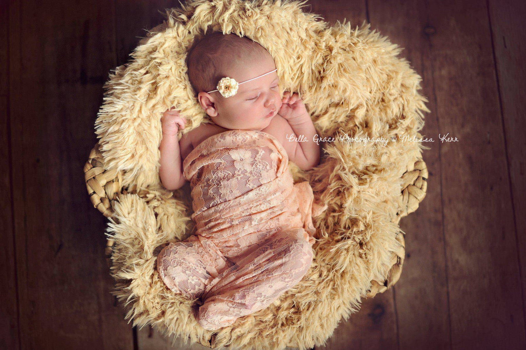 These gorgeous super stretchy lace wraps are easy to use and can be completely swaddled around newborn babies for the perfect first photo!  Their generous length and width measures approximately 30" x 18" unstretched  or you can choose a larger size using the drop down menu.