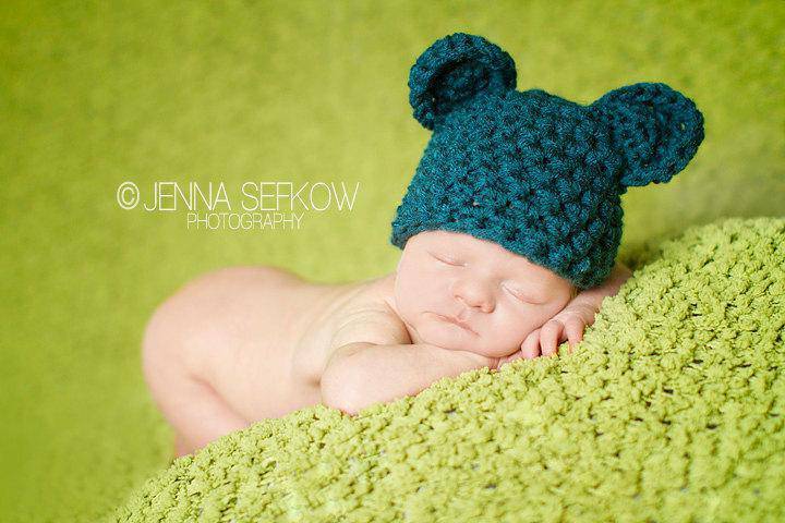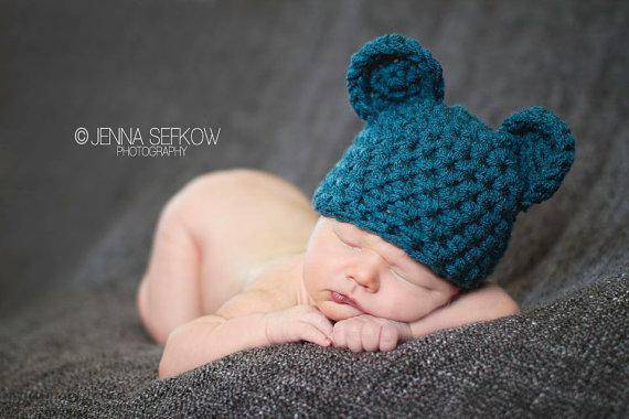 This cute little teal blue crochet teddy bear hat is the perfect hat for those newborn photos!