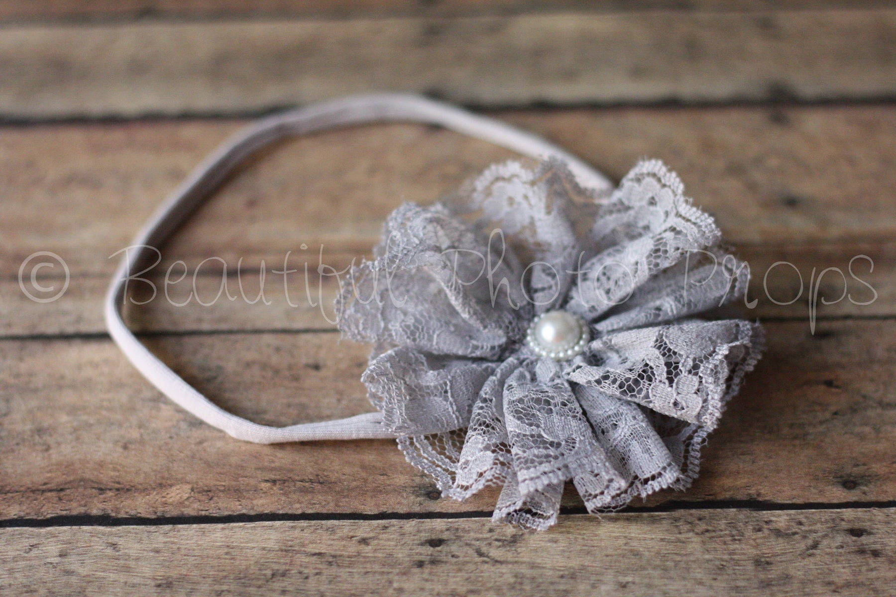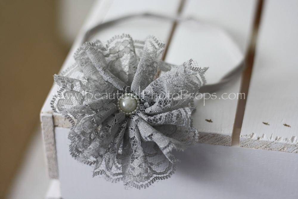 Vintage Lace Flower Headband Gray