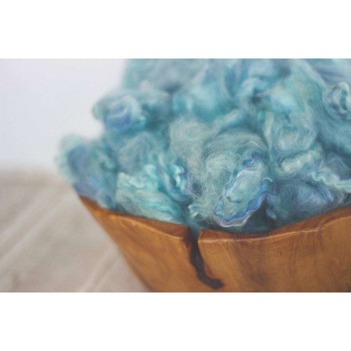 Our newborn photography fluff is carefully crafted by hand and perfect for using as basket stuffing or nest filler for newborn photography. This super soft loose wool blend can be pulled apart, fluffed and spread out to be arranged as you need it to get that perfect shot.