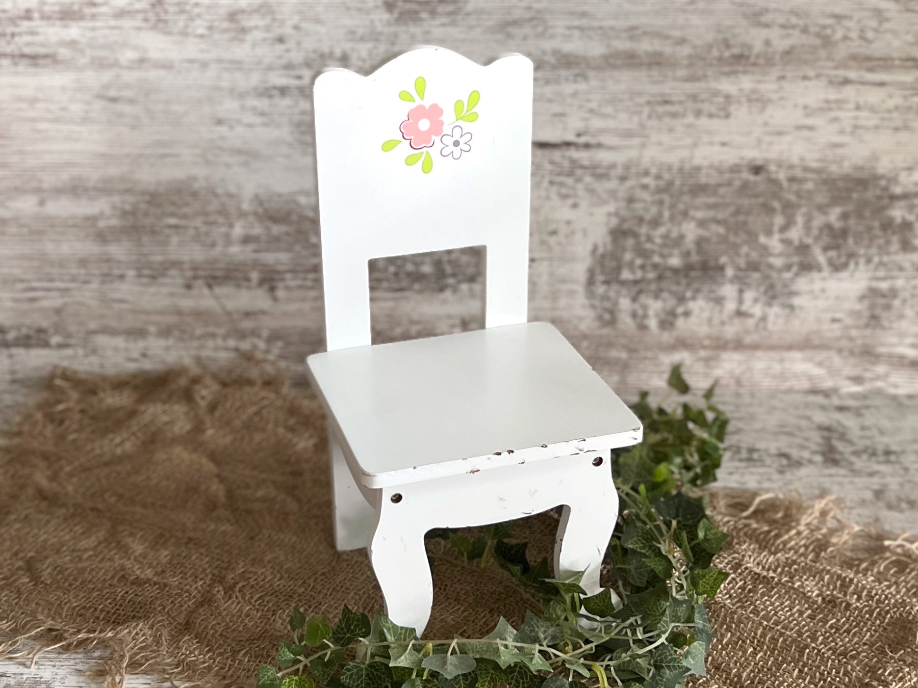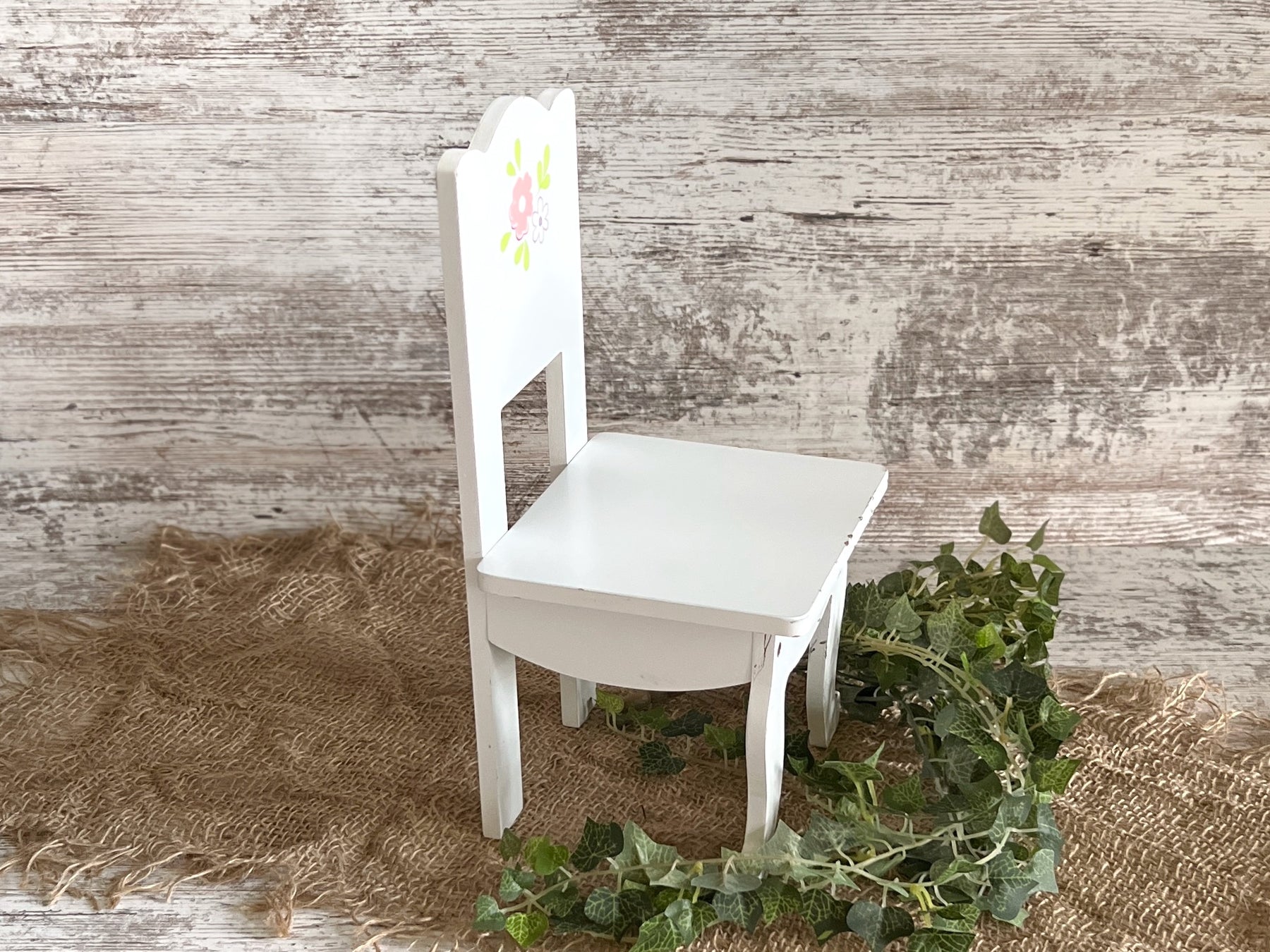 Our adorable White Floral Newborn Wooden Posing Chair Photo Prop is a perfect addition to your newborn photo sessions. With its beautiful handmade design and sweet flower display, this prop is perfect for your newborn photography session! Measures approx. 13x6.5x6.5
