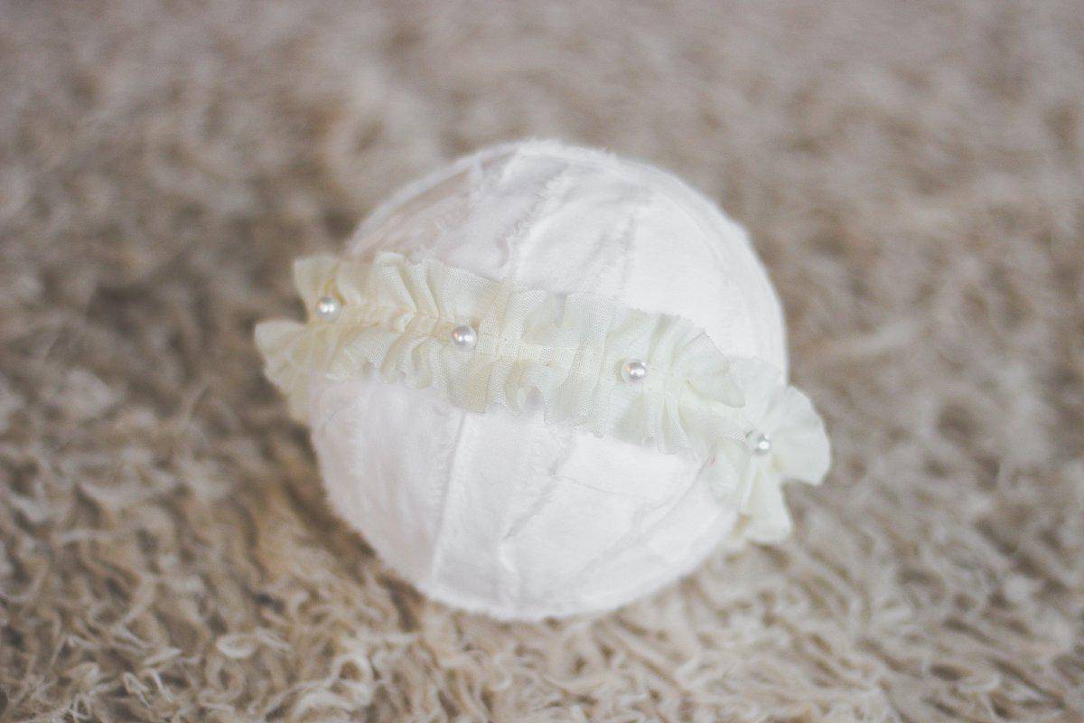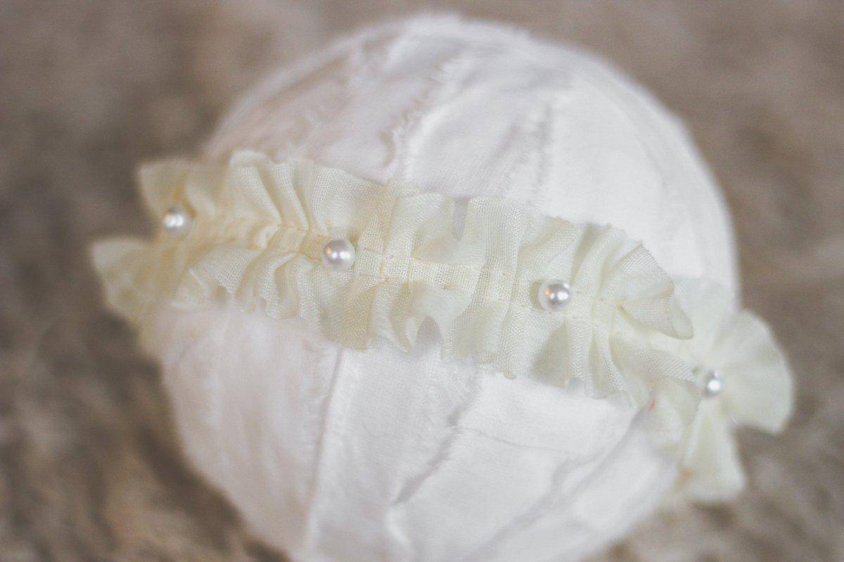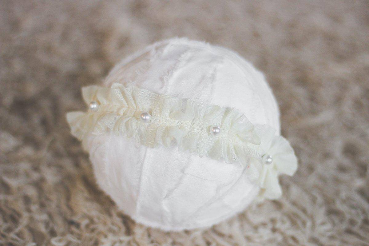 A photographer's dream! This sweet white ruffle and pearl headband is so adorable! This is the perfect piece to wear at any age, from newborn to adult!